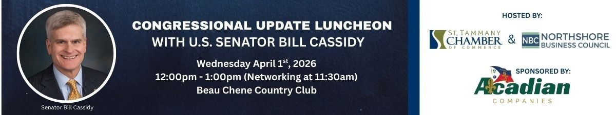 Join us for a Congressional Update Luncheon with U.S. Senator Bill Cassidy, M.D. Hear directly from him as he shares updates from Washington, D.C., and discusses the federal issues shaping Louisiana’s business climate, workforce, healthcare system and overall economy.
